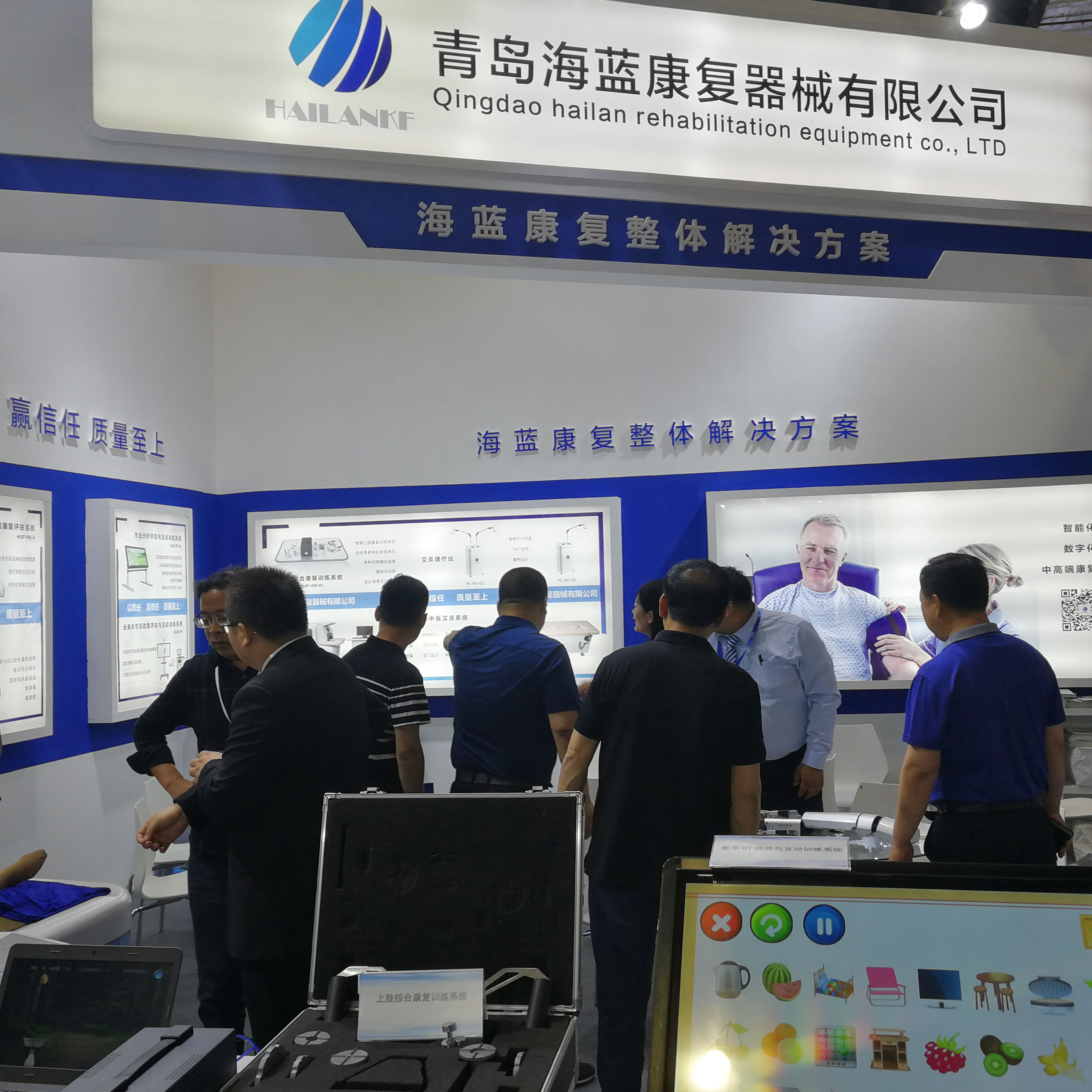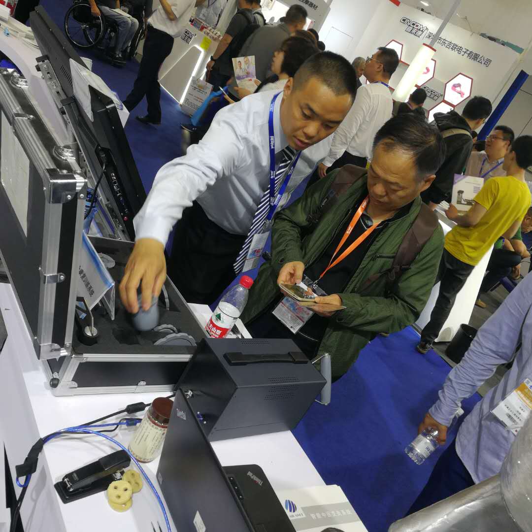 海藍康復(fù)展位最亮眼的明星還是非“它們”莫屬了。這次展會海藍康復(fù)的【作業(yè)分析評定與訓練系統(tǒng)】、【全身關(guān)節(jié)活動度評估與訓練系統(tǒng)】、【神經(jīng)康復(fù)機械手】、【干式水療床】、【艾灸理療儀】成為全場焦點,備受參展嘉賓的關(guān)注與喜愛。